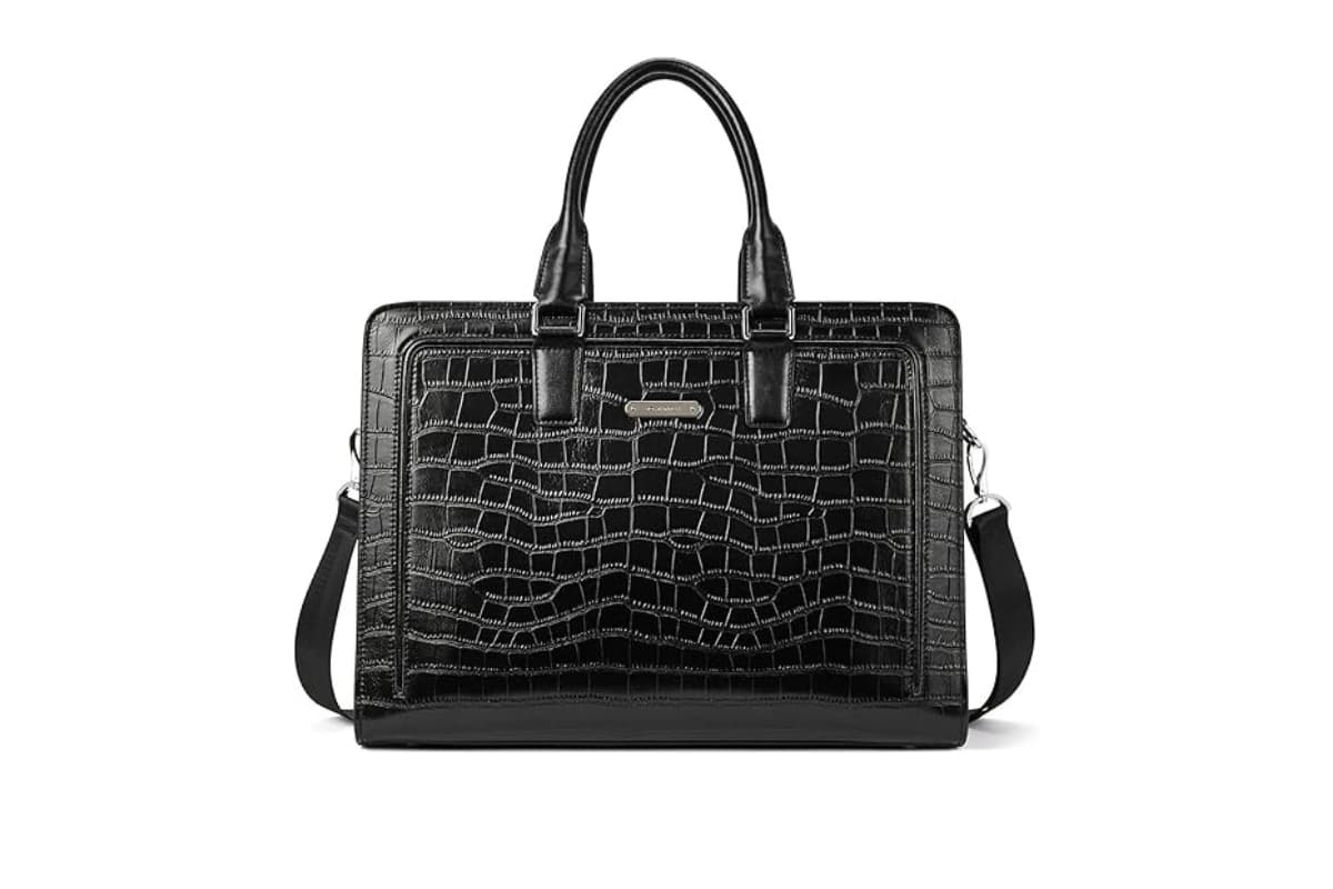 The BOSTANTEN Women Genuine Leather Briefcase Tote features premium genuine leather crafted with a unique crocodile pattern, giving it a timeless and elegant vintage appeal. Its large capacity and smart compartments make it easy to organize documents, accessories, and a laptop securely, which is essential for busy professionals. The sturdy shoulder strap is designed to provide comfort during extended use, reducing strain while maintaining style.